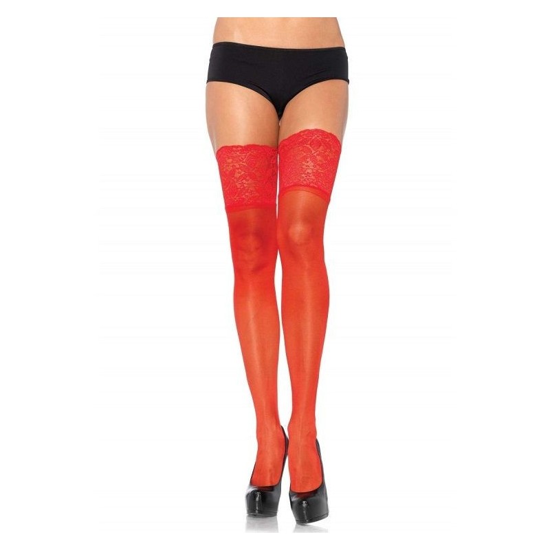 LEG AVENUE MEDIAS ROJAS AUTOADHESIVAS CON ENCAJE ANCHO PLUS SIZE