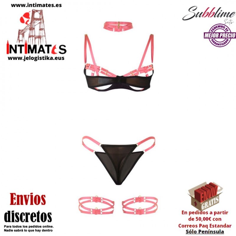 Enamórate del Conjunto de Lencería Rosa Sexy con Diseño Hollow Cut, Tiras Ajustables y Detalle Bicolor, una pieza cautivadora de Subblime creada para resaltar tu lado más sensual y sofisticado.