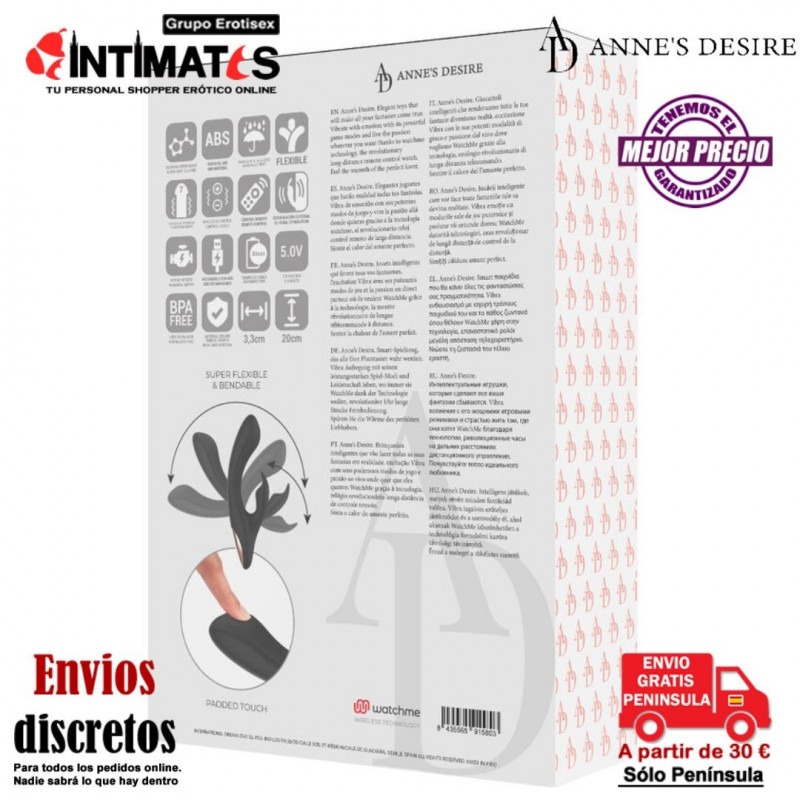 Puedes sincronizarlos con los juguetes sexuales que utilicen la tecnología Watchme para controlar las vibraciones y las funciones de nuestro juguete erótico Anne's Desire.