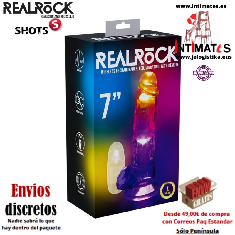 LED Vibrating Straight Cock · Pene recto con vibración y testículos 180mm · RealRock