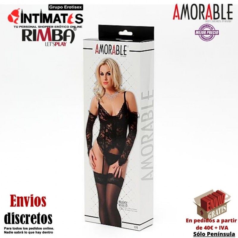 Naughty Basque Set es un conjunto que incluye el corsé, el tanga, unos guantes hasta el codo, el liguero y las medias a juego con el que podrás disfrutar de unas noches de pasión sin fin.