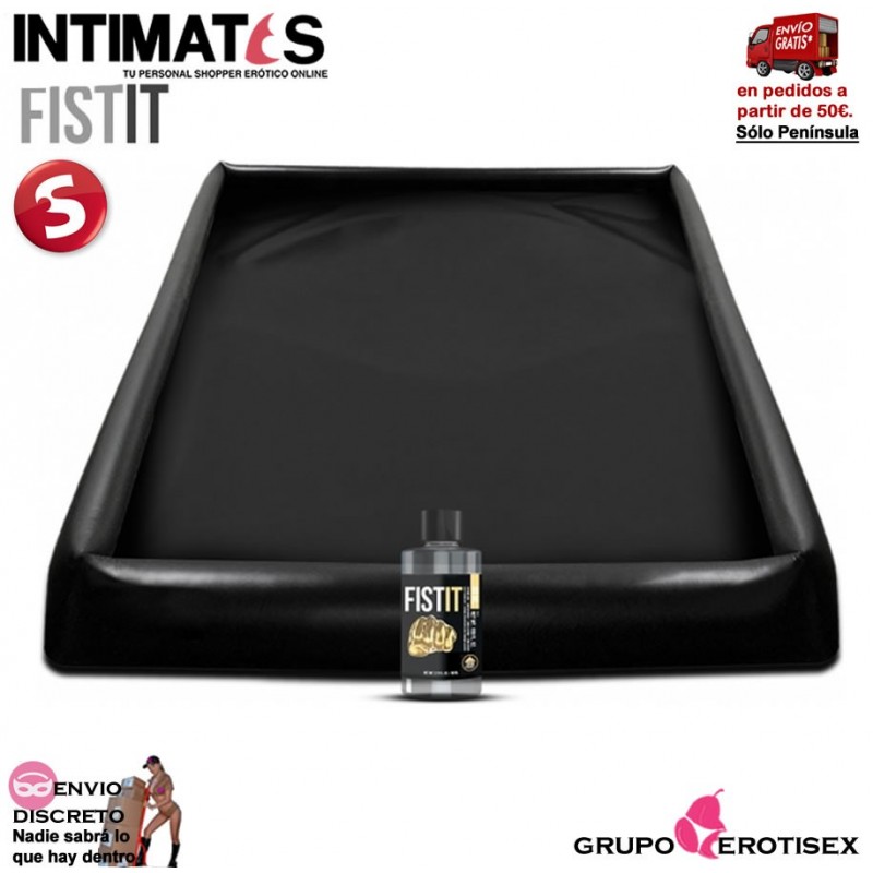 Con los lados hinchables se puede colocar encima de la cama, puede ser la sustituta de tus sábanas, o incluso puedes ponerla en el suelo, para juegos lascivos con lubricación.