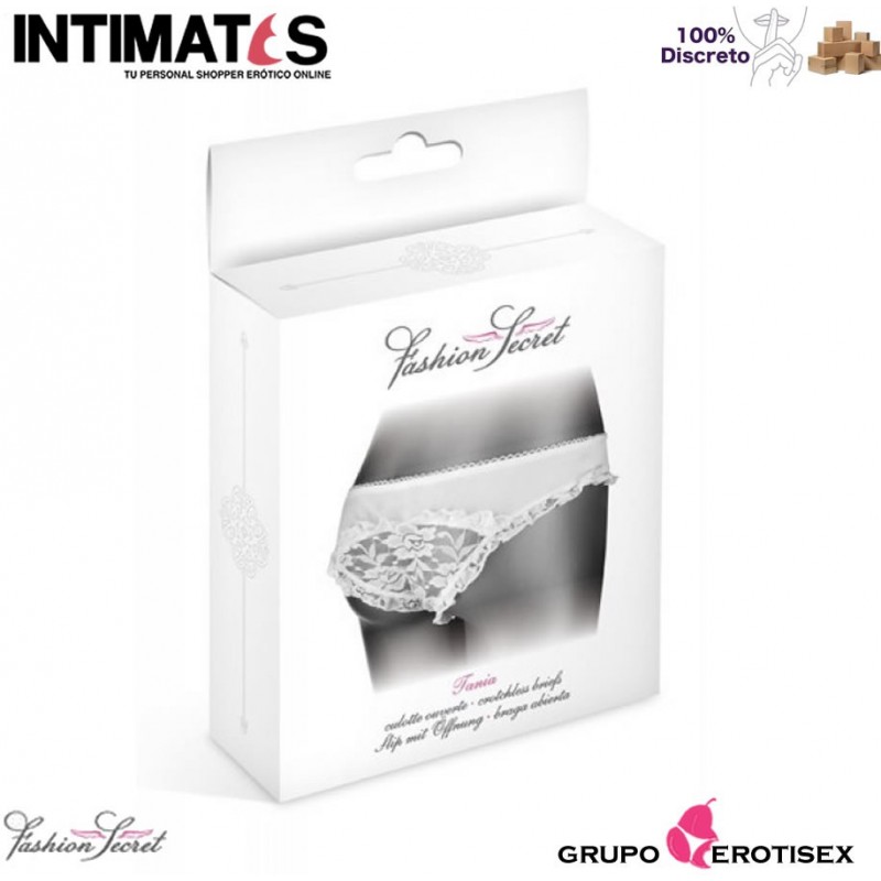 Para las noches calientes, usa estas bragas blancas con bordado de encaje y abiertas en la entrepierna.