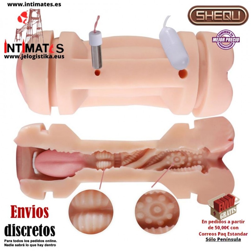 Kay es un masturbador doble con vibración dual de la marca Shequ diseñado para ofrecer una experiencia de placer intensa y multifacética, combinando la simulación de la boca y la vagina en un solo dispositivo.