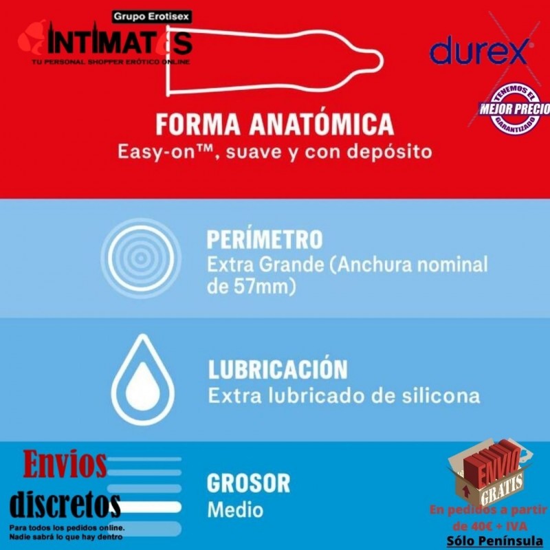 Durex Sensitivo Extra Grande XL son preservativos ultra finos para ofrecerte mayor sensibilidad y aumentar el placer y de mayor tamaño.