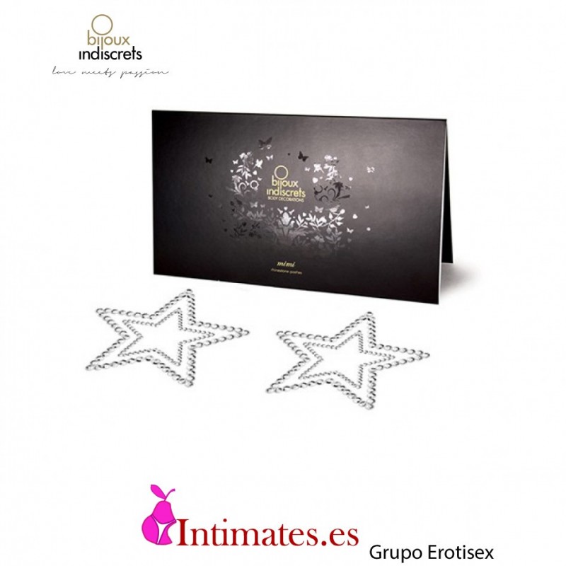 Mimi son decoraciones corporales que realzan todo tipo de pechos, y son muy fáciles de aplicar gracias a la base de silicona autoadhesiva a la que van fijadas.