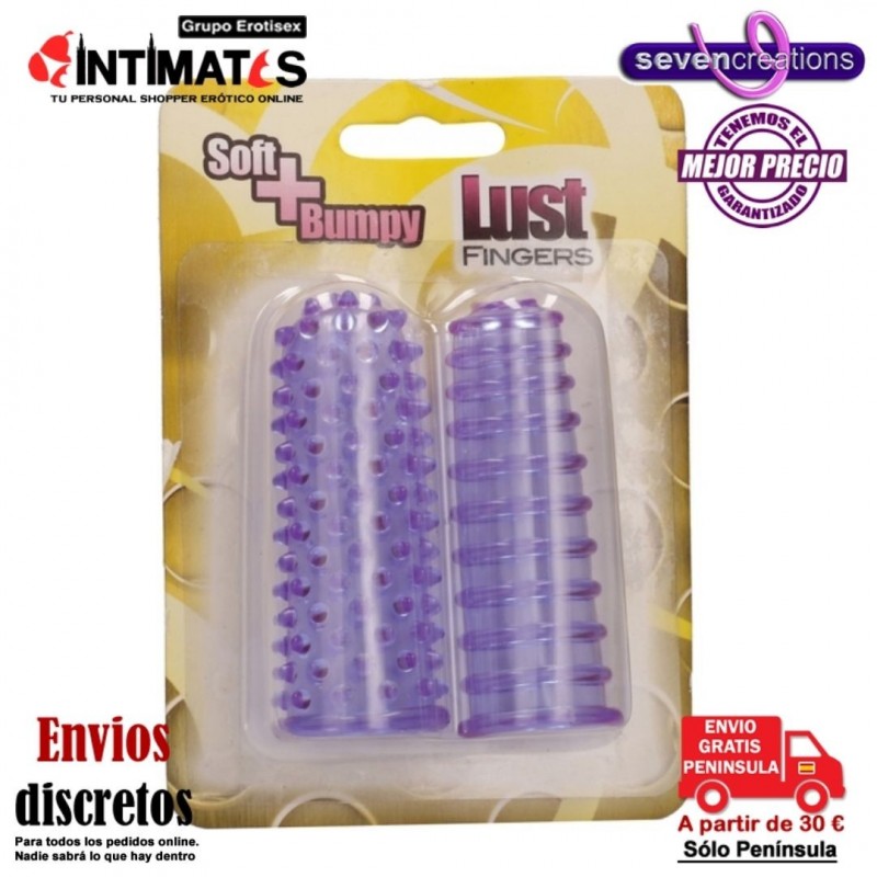 Lust Finger son un juego de dos suaves fundas que se ajustan confortablemente sobre los dedos o un vibrador para mejorar la estimulación en la pareja.