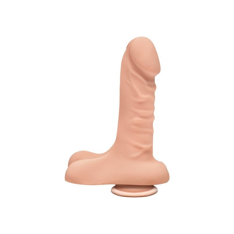 THE SUPER D VANILLA 6 INCH, Pene realístico de doble densidad, con un exterior suave y flexible, pero con un núcleo interno rígido. Se calienta al tacto para crear la sensación más realista que se pueda imaginar. Las venas esculpidas y la cabeza contorneada se suman al efecto realista mientras que los testículos firmes y una base con ventosa resistente hacen del Super D un producto seguro para todos los tipos de juego.