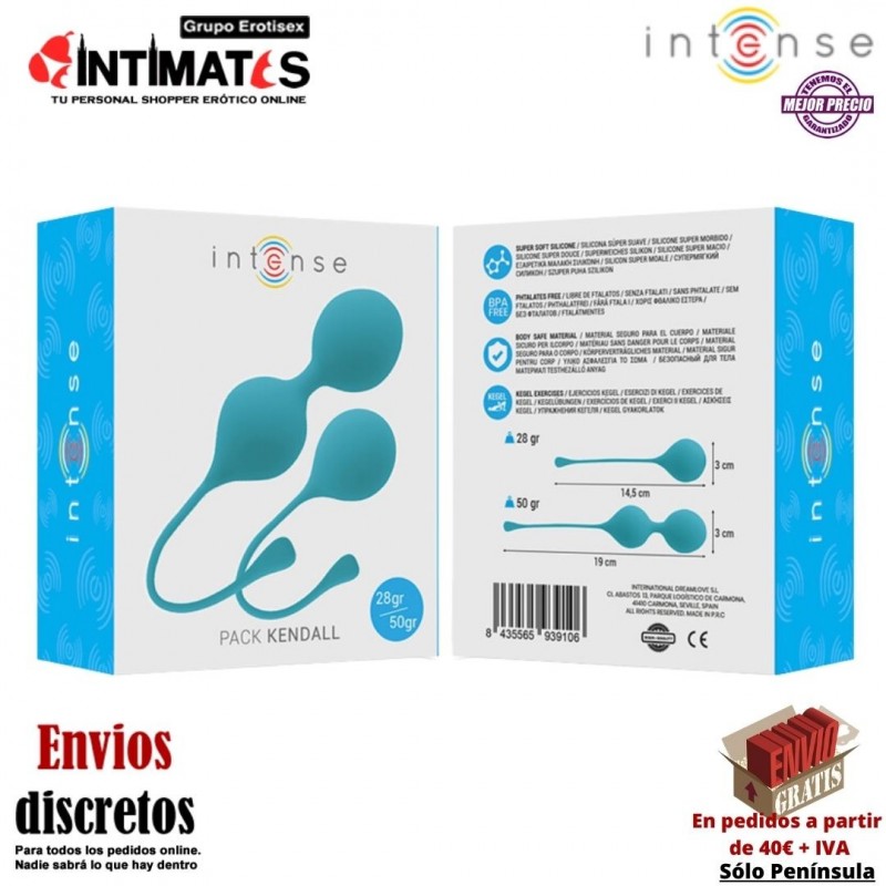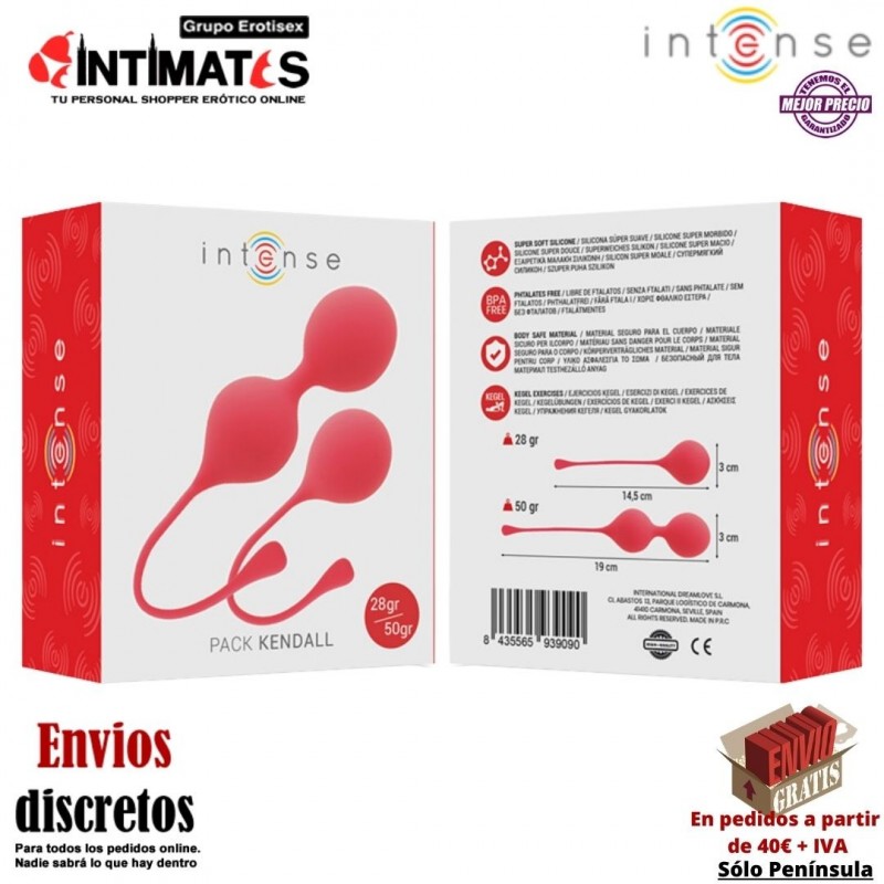 Intense™ Pack Kendall ayuda a tonificar los músculos del suelo pélvico responsables de placer sexual, tienen un peso perfectamente dosificado que garantizan una sensacional sesión de entrenamiento del suelo pélvico, para atenuar la incontinencia, intensificar el orgasmo y en consecuencia mejorar la salud sexual.