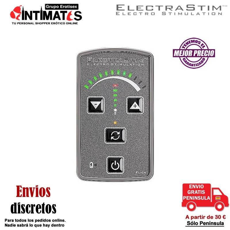 Ideal para parejas y jugadores de poder que quieren usar más juguetes al mismo tiempo, Flick Duo puede alimentar hasta 4 electrodos unipolares o 2 bipolares a la vez.