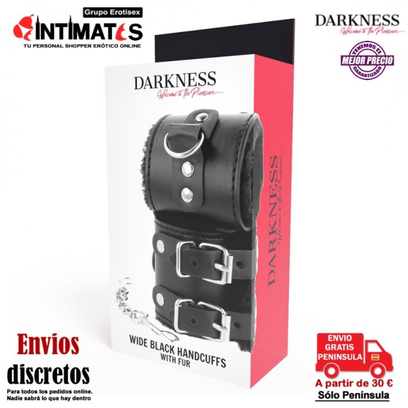 Wide Black Hand Cuffs · Esposas ajustables de cuero con forro · Darkness