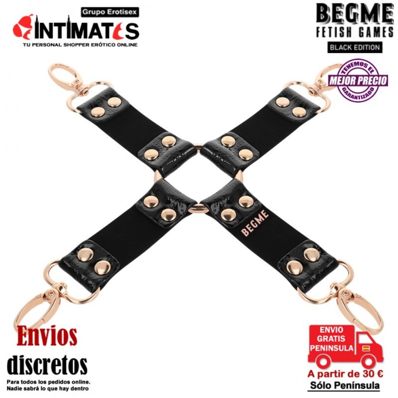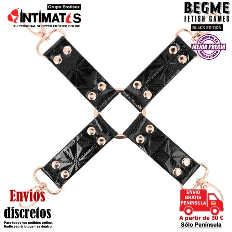 Descubre este hog-tie fabricado en cuero vegano y forrado en neopreno de Begme, con el que unir las extremidades, dejando al sumiso inmóvil e indefenso.