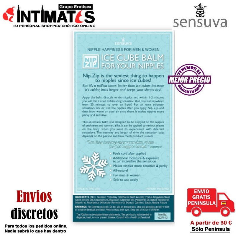 Nip Zip -Chocolate y menta · Bálsamo refrescante para pezones · Sensuva
