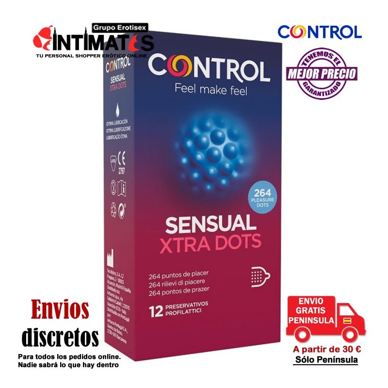 Sensual Xtra Dots 12u. · Preservativos con 264 puntos de placer · Control