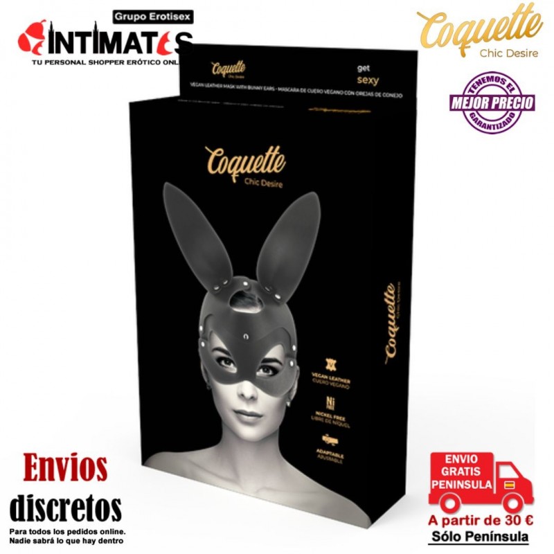 Máscara de cuero vegano con orejas de conejo · Coquette