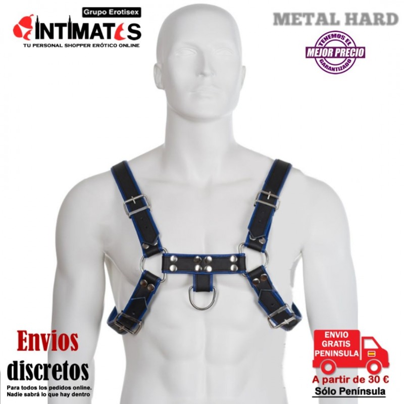 Practica el BDSM, con este arnés de cuero para hombre, completamente enlazado y correas ajustables con cadenas de metal.