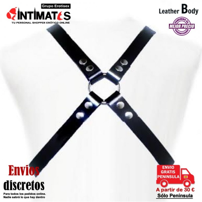 Arnés para hombre con correas ajustables en forma de cruz.