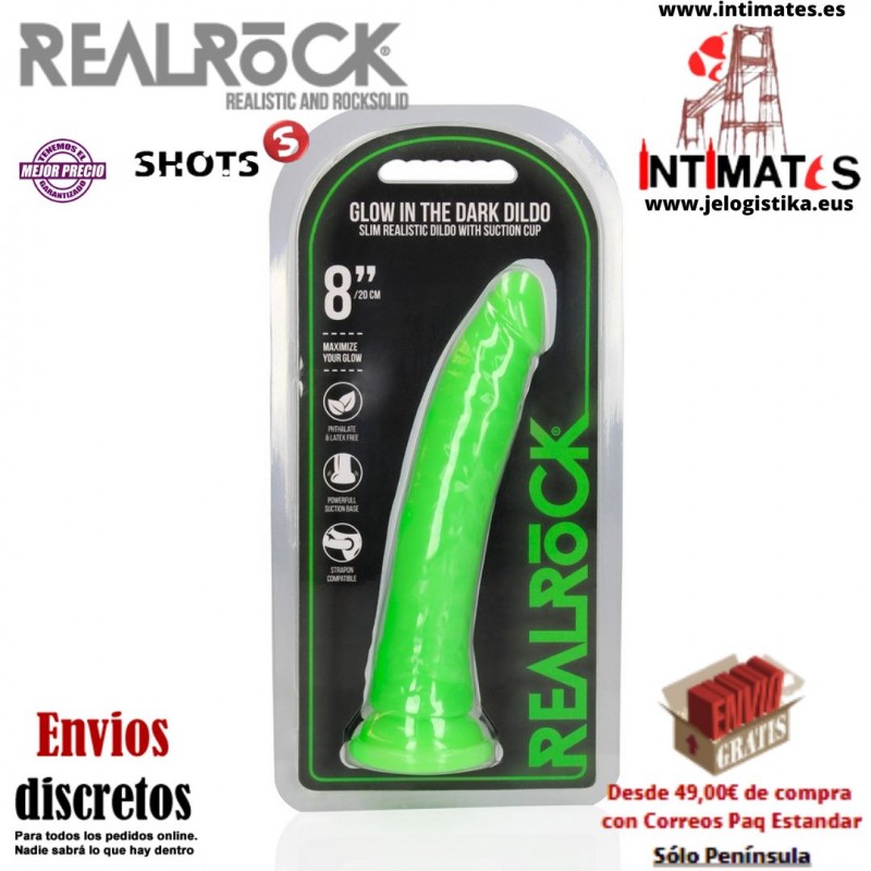 Glow in the Dark 8" · Consolador delgado y realista con ventosa · RealRock