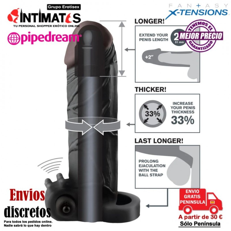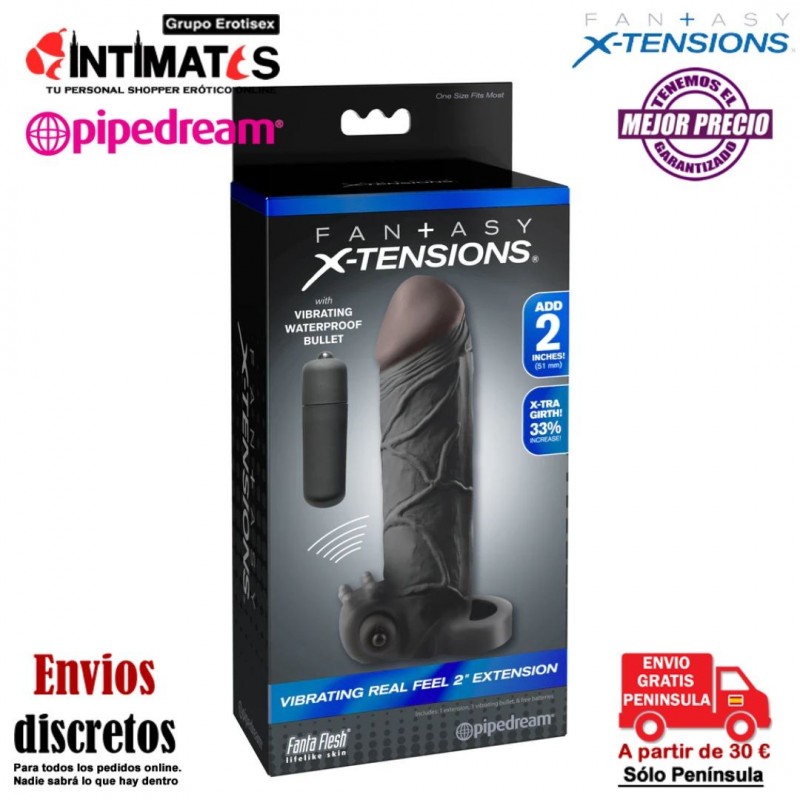 ¡Intensifica el placer para ambos y agrega pulgadas al instante con la extensión de 2" The Vibrating Real Feel!