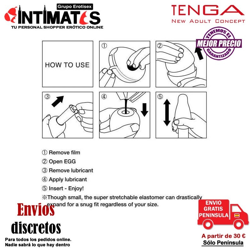 Los huevos Tenga, permiten una masturbación placentera y suave, produciendo sensaciones al contacto de la piel, nunca antes experimentadas.