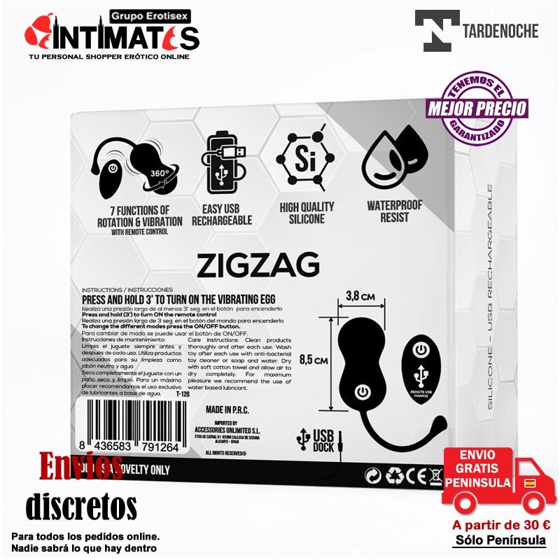 Zigzag · Huevo zigzageante y vibración con control remoto · Tardenoche