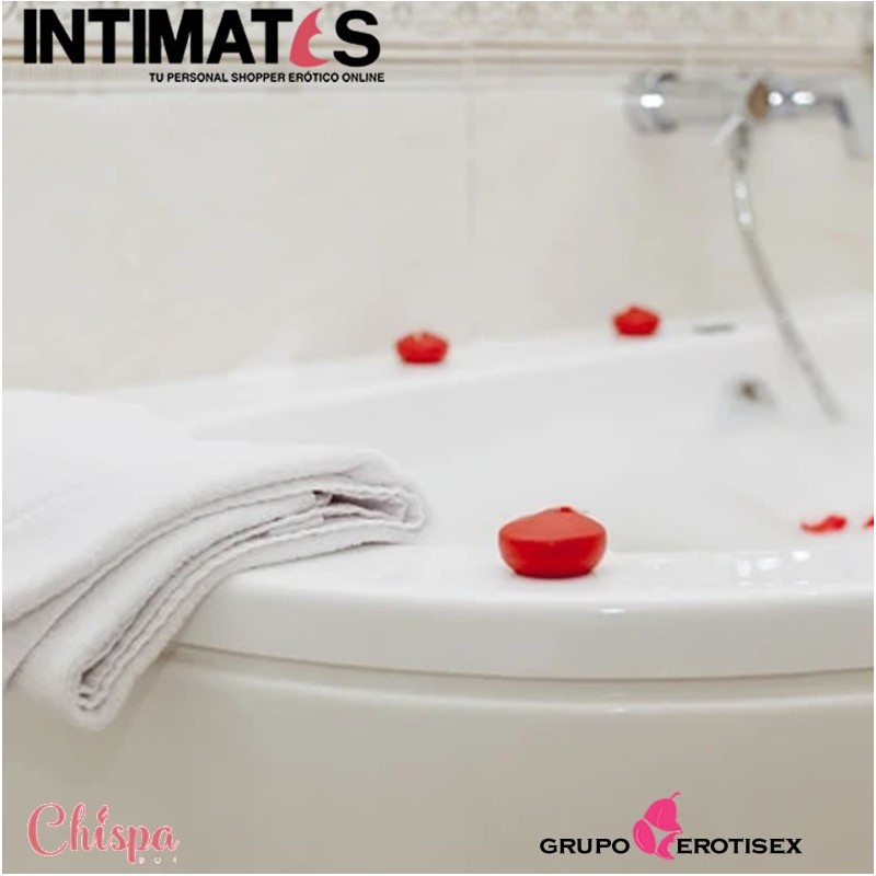 La caja viene con 4 velitas flotantes, una bomba de baño de limón, una esponja de flor, pétalos rojos y un masajeador sumergible para ponerle un poquito de diversión al baño...(Atado a la esponja, es lo más).