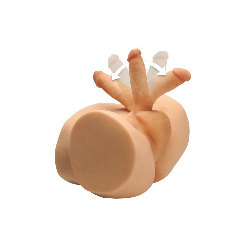 Este masturbador de tamaño real es una réplica exacta de un pene y de un ano. Este masturbador tiene un canal profundo, estrecho, y con protuberancias para le dar placer extremo, y el pene de 18 cm y 5 cm de diámetro tiene una estructura interior para que lo ponga en la posición deseada.