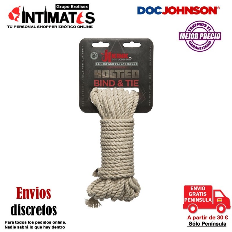Creamos que esta cuerda de bondage de cáñamo Kink by Doc Johnson Hogtied Bind & Tie de 10 metros y un diámetro de 6 mm, es ideal para la mayoría de los tipos de aparejos, y para satisfacer todas sus necesidades.