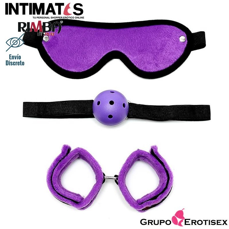 Soft Bondage · Antifaz + Bocado + Esposas color purpura · Rimba
