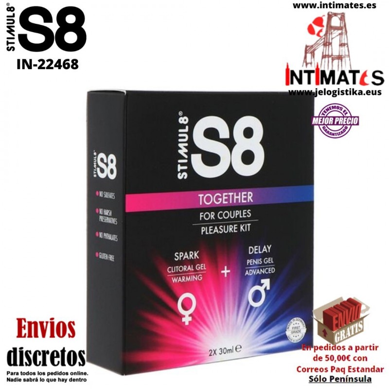 S8 Together Kit · Gel para el clítoris S8 Spark y gel retardante Delay · Stimul8