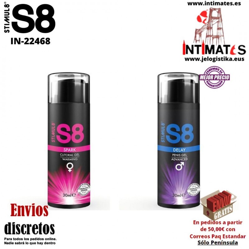 Este set incluye el atractivo gel para el clítoris S8 Spark para ella y el gel retardante S8 Delay para él.
