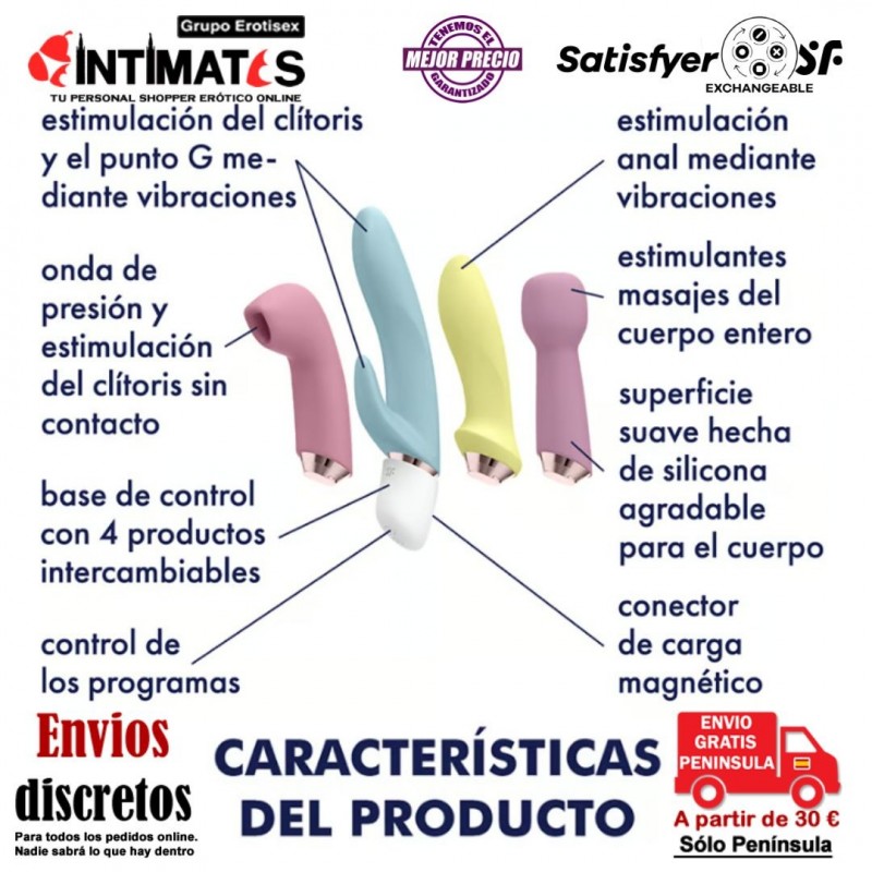 Descubre la máxima versatilidad y llévate 4 de los bestsellers de Satisfyer en un colorido pack.