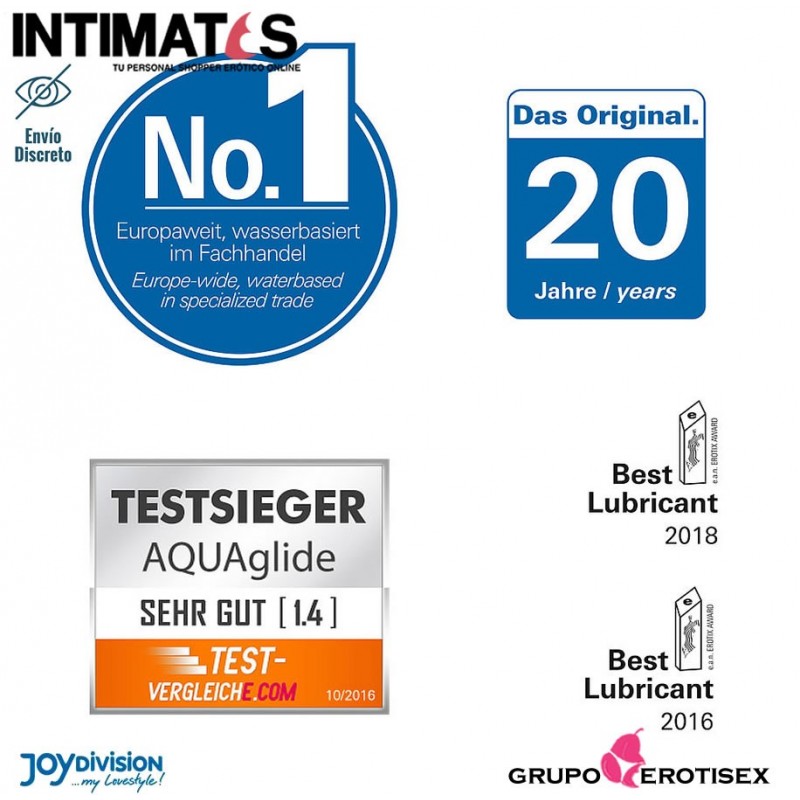 Sumérgete en una sensación abrumadora durante el juego amoroso: El cristalino Original AQUAglide es un lubricante médico que proporciona un nivel de humedad óptimo y duradero con sólo unas pocas gotas. AQUAglide ha sido el lubricante más conocido y popular en el mercado europeo durante 20 años.