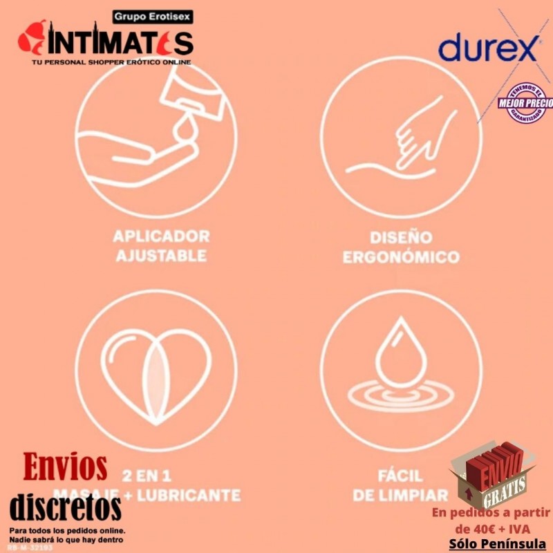 Massage 2en1 sensual de Durex es soluble en agua y fácil de lavar.