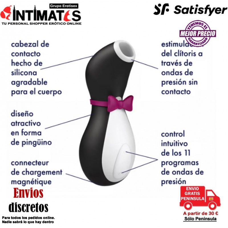 Vestido de gala con un elegante esmoquin, Penguin combina la revolucionaria tecnología Air-Pulse de Satisfyer con un diseño encantador y divertido.