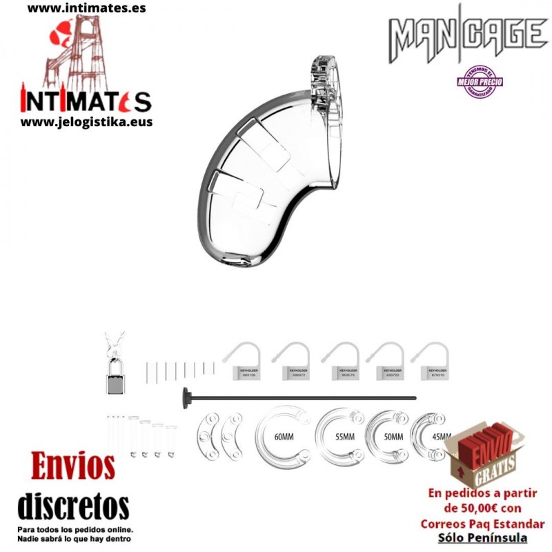 Está jaula de castidad está fabricada de policarbonato de alta calidad, un material duradero e hipoalergénico.