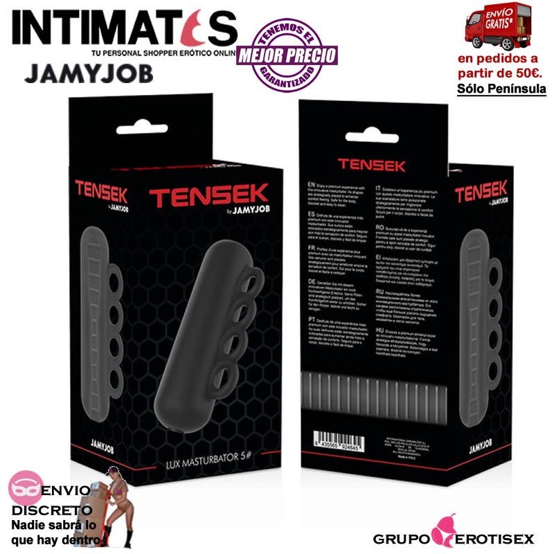 El innovador Tensek 5 se une a la colección de masturbadores de Jamyjob, presentando un diseño único completamente negro con agarre facil.