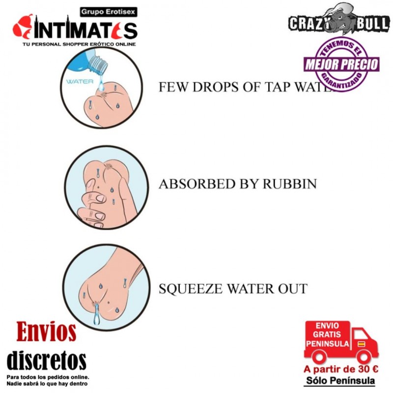 Waterskin permite si aplicas agua antes de usar el masturbador y su material especial lo absorbe, sirviendo de auto-lubricación cuando la acción comience!