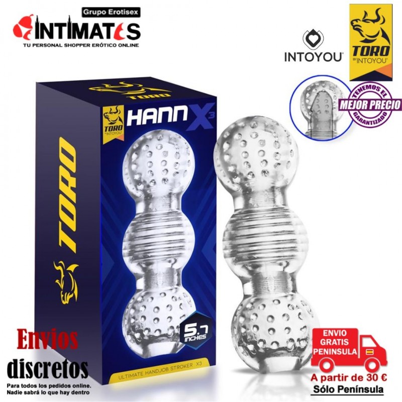 HannX3 es un masturbador manual, perfecto para que puedas usarlo donde y cuando quieras, sin necesidad de preocuparte de pilas o de tener que cargarlo.