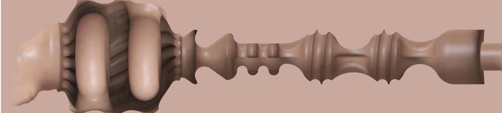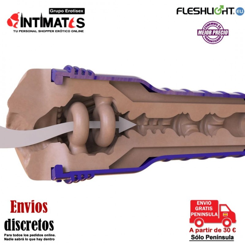 Después de penetrar este centro del placer, atravesarás un canal altamente texturizado y estrecho que consiste en anillos acanalados y discos flotantes, diseñados para masajear tu erección a la perfección.