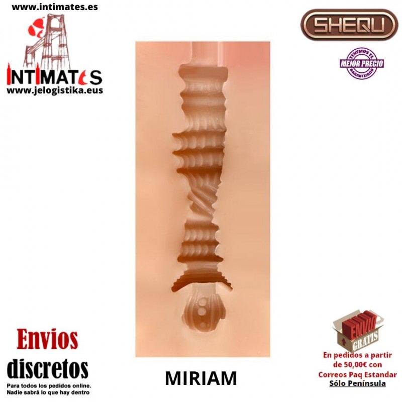 Miriam es un masturbador masculino con abertura de vagina de la marca Shequ diseñado para ofrecer una experiencia de placer realista y envolvente.