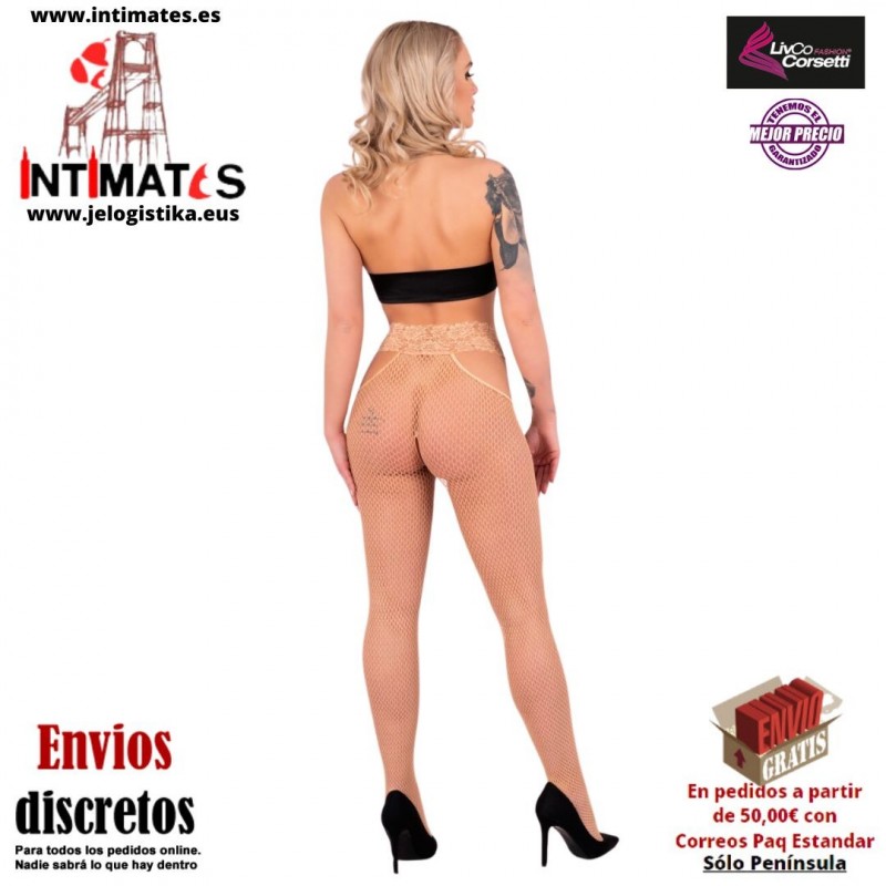 Gina · Medias de rejilla beige con entrepierna abierta y cinturón decorativo · Livco Corsertti