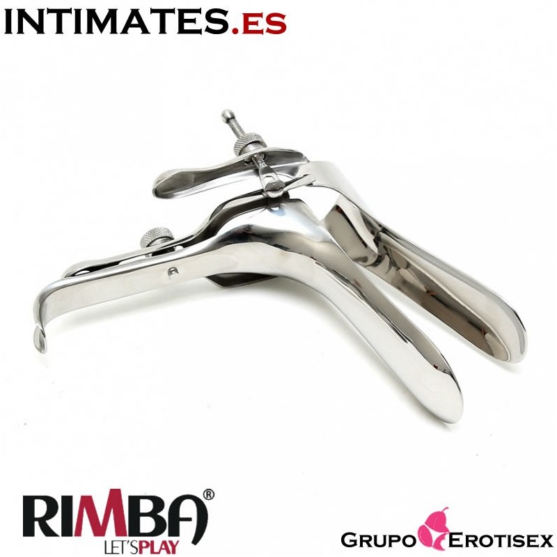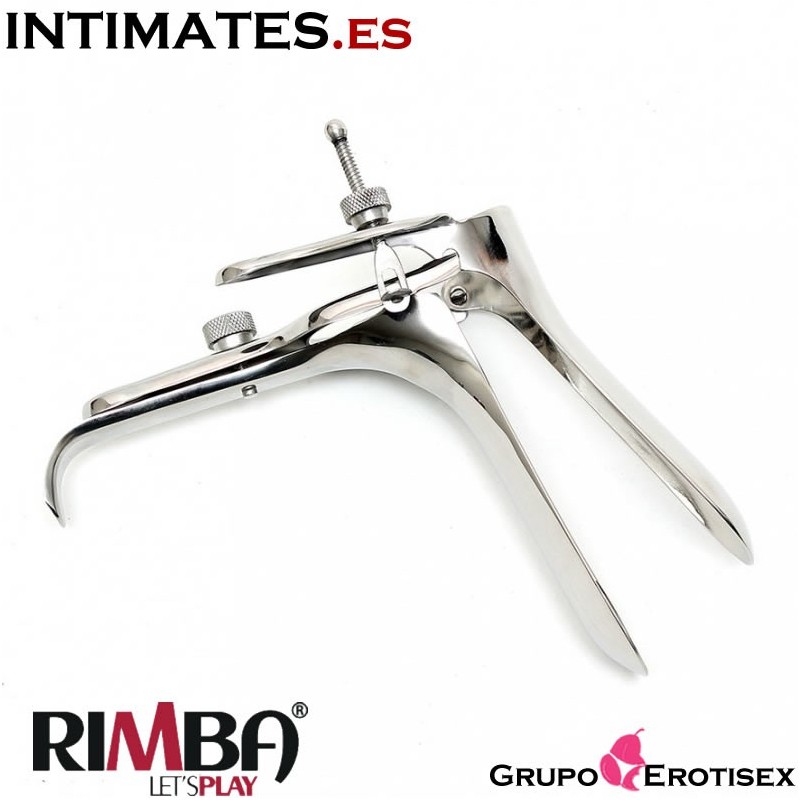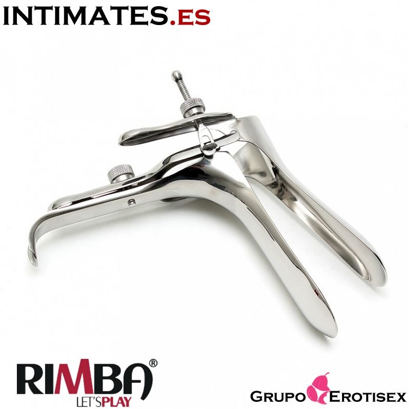Espéculo vaginal de dos cucharas acero quirúrgico, con apertura graduable.