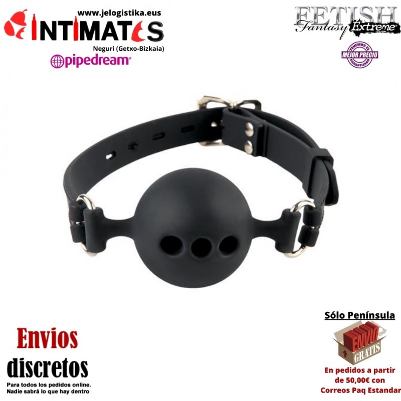 La bola tiene además agujeros para facilitar la respiración y está hecha de silicona Elite para adepatarse a la gran mayoria de los tamaños.