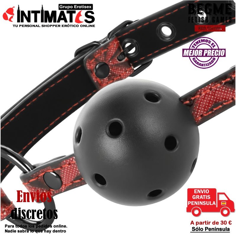 Esta mordaza está diseñada con productos no tóxicos, y agujeros de respiración para la comodidad del sumiso.