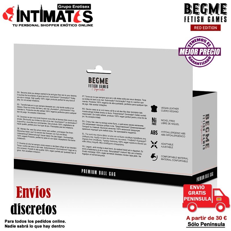 Mordaza de cuero vegano con bola · Begme Red Edition