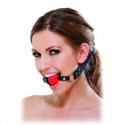 La más usada y conocida. Consiste en una correa la cual sujeta una pequeña bola de caucho o silicona de entre 4 y 8 centímetros de diámetro, se sujeta por detrás de los dientes, aunque esto no impide el habla si desfigura totalmente las palabras, del mismo modo causa un ligero babeo que algunos les puede parecer erótico.