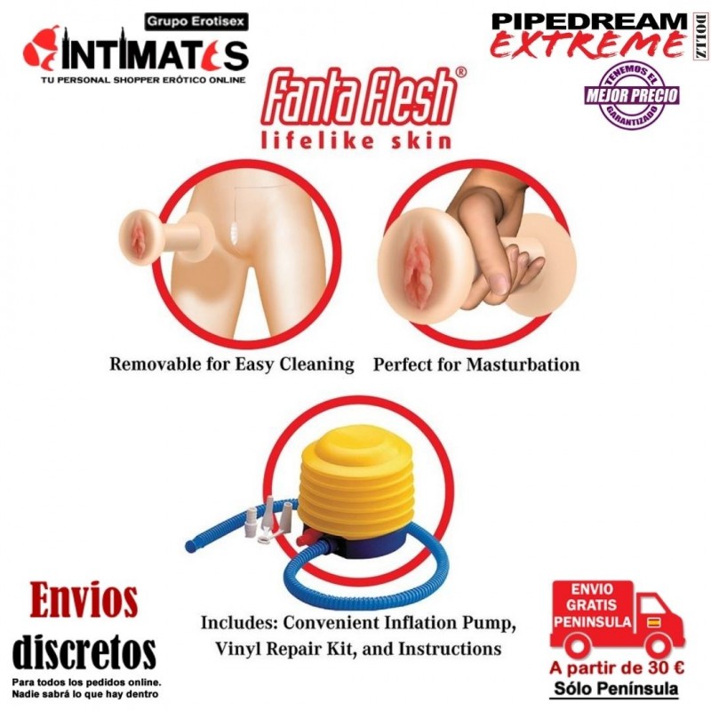 El coño y el culo de Fanta-Flesh™ son extraíbles para facilitar la limpieza en profundidad, e incluso se pueden disfrutar por separado para la masturbación.