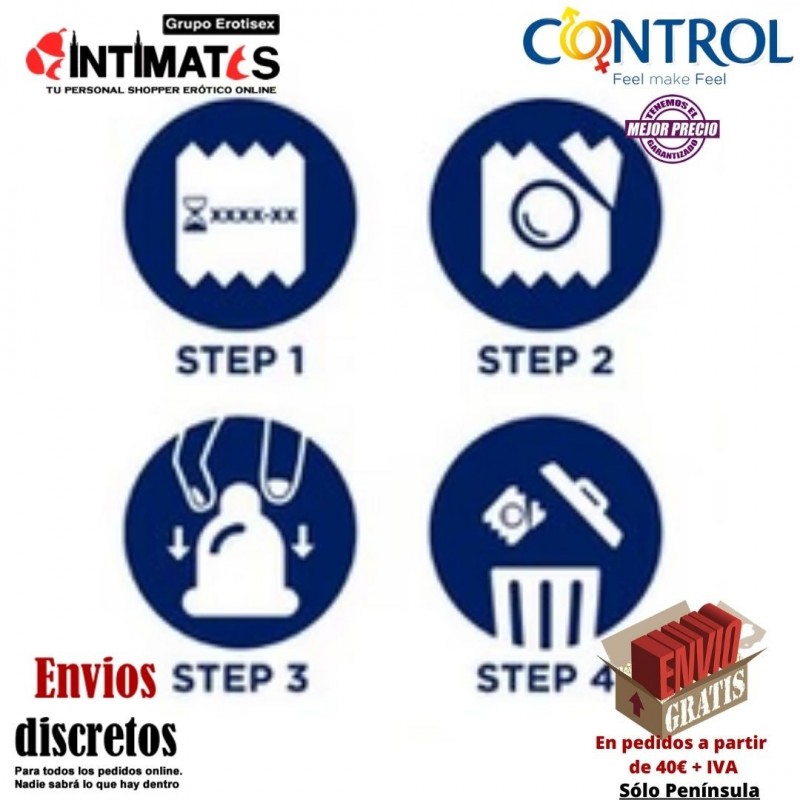 La seguridad de los preservativos Control está garantizada por un proceso de fabricación sometido a rigurosos controles de calidad, finalizando con el control electrónico unitario.