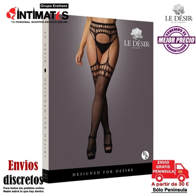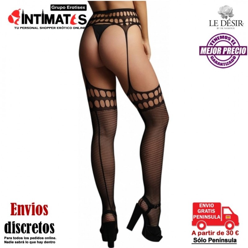 Medias de rejilla con liguero de diseño abierto en la cintura y en la parte superior de las medias.